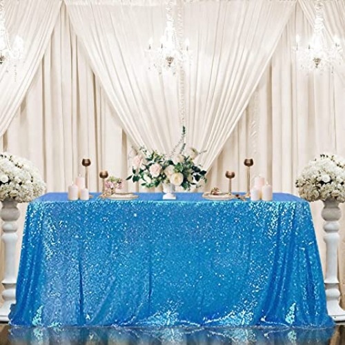 Ice Blue Sequin Tablecloth - 132" X 90"